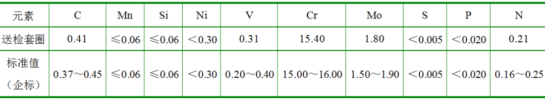 化学成分分析结果如表1所示。分析结果表明,套圈材料化学成分符合标准要求。